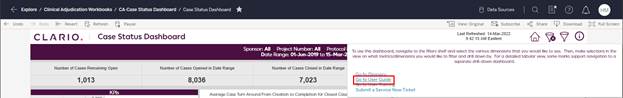(Information) button. Click to select the Go to User Guide link. A new browser tab opens, displaying the